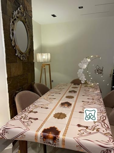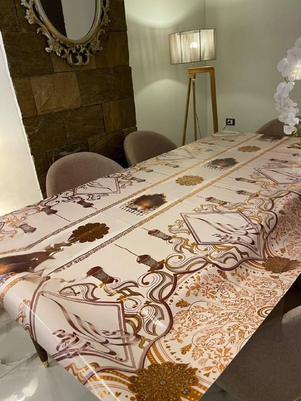 - PREMIUM IMPORTED TABLECLOTH: Elegant decorative table covering designed specifically for large dining tables, featuring an ornate traditional pattern with intricate detailing in warm brown and gold tones