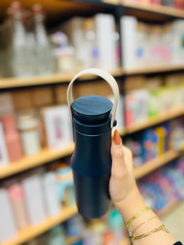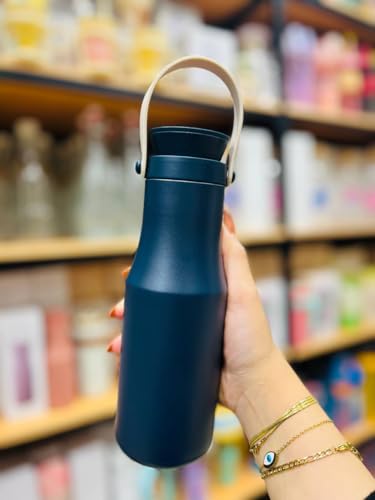 Generic - مج سفر حراري معزول بغطاء بلمسة جلدية ومقبض حمل، لون أزرق كحلي
