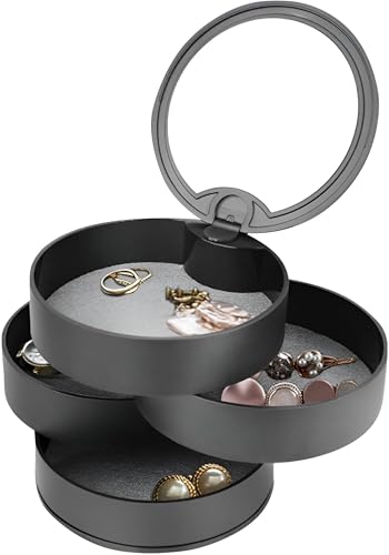 - With a high capacity and functional design, this jewelry box consists of four layers that provide ample storage space for sorting your jewelry. Each layer rotates 360 degrees, allowing for easy access to your items. In addition, the anti-scratch felt pads on each layer protect your jewelry from scratches, while the non-skid mat at the bottom prevents the box from sliding around while in use.
