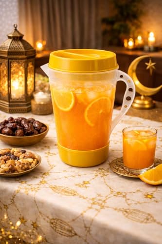 - CONVENIENT DESIGN: Features an ergonomic handle for comfortable pouring and a secure yellow lid to keep beverages fresh and prevent spills during storage