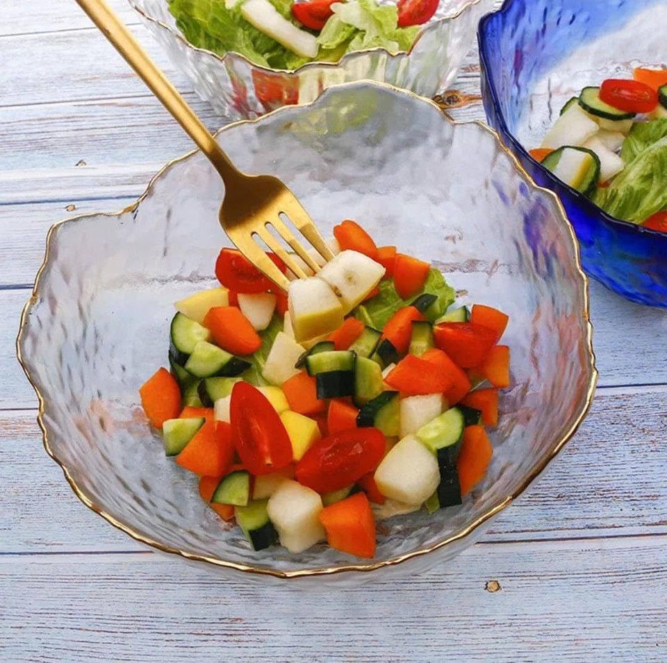 - ELEGANT DESIGN: Textured glass bowls featuring luxurious gold-rimmed edges and a sophisticated matte finish that adds elegance to any table setting