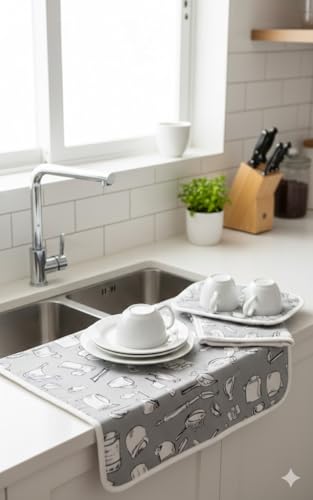 - مادة سريعة الجفاف: مصنوع من قماش سريع الجفاف يمتص الرطوبة بكفاءة من الأطباق والأواني وأدوات الطهي