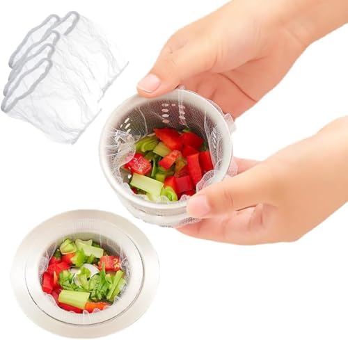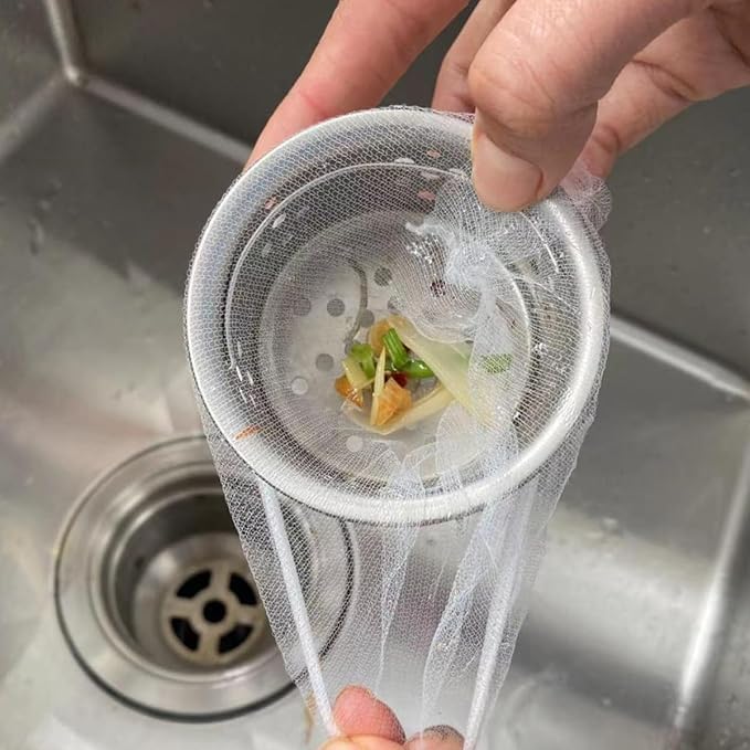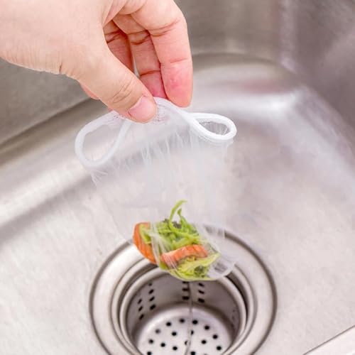 - تصميم مريح: 100 كيس فلتر شبكي للاستعمال مرة واحدة مصممة لالتقاط فضلات الطعام والحطام، مما يحافظ على تصريف الحوض نظيفًا وخاليًا من الانسداد