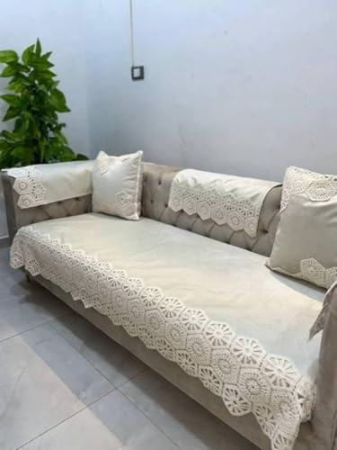 Generic - Generic Linen Sofa Cover Set with Lace Trim, (Beige), 10-Piece Set, Large Sofa 200x100cm, Small Sofa 150x100cm, 2 Chairs 80x85cm, 6 Napkins 60x60cm .flo