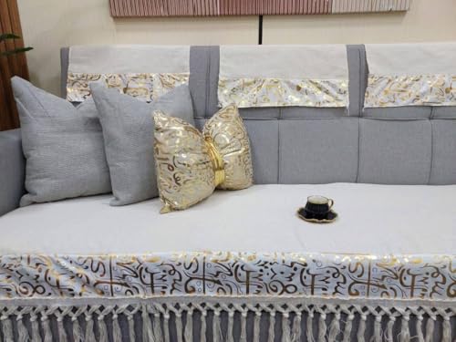 Generic - Generic Living Room Linen Set with Gold Pattern Trim,(Grey), Large Sofa, Small Sofa, 2 Chairs, 6 Napkins, set of 10, .br