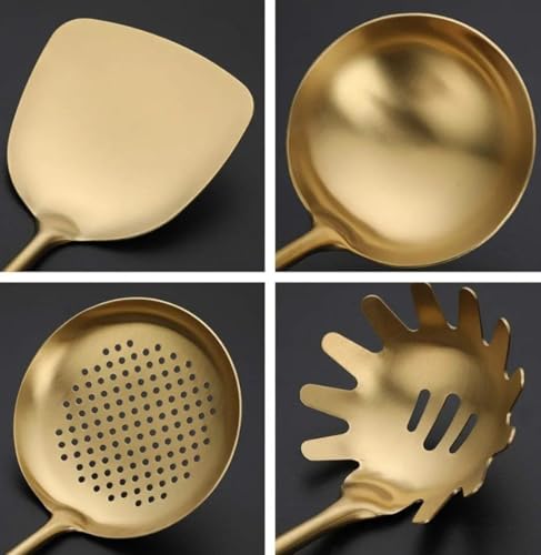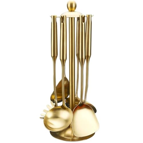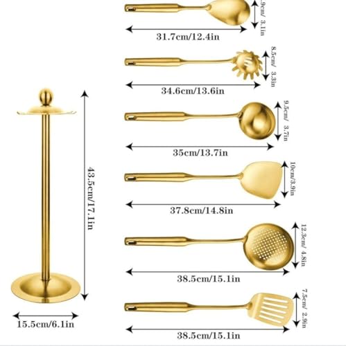 Generic - Generic Luxury 7-Piece Kitchen Utensil Set, Gold Stainless Steel Serving Tools with Stand, Heavy-Duty 304 Grade, Non-Peeling Finish .ar
