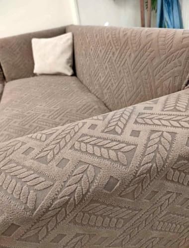 Generic - غطاء أريكة منقوش ومتشابك، مصنوع من خامة متينة، مقاس كبير، لأثاث غرفة المعيشة، طقم 4 قطع يتضمن أريكة كبيرة وأريكة صغيرة وكرسيين (بني)