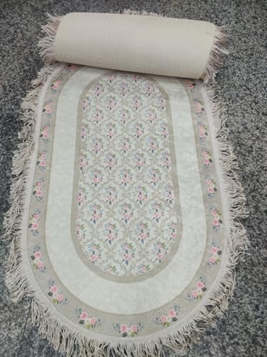 Generic - Generic Luxury Oval Bathroom Mat Set, Black Marble Pattern with White Fringe, 2-Piece Turkish Velvet, 95x60cm and 50x60cm sr (beige)