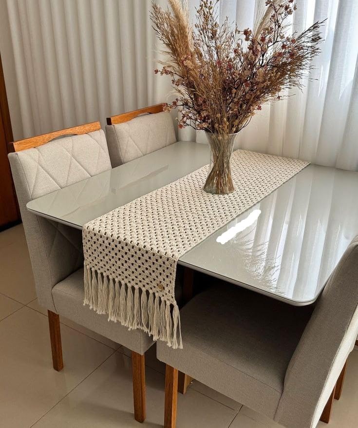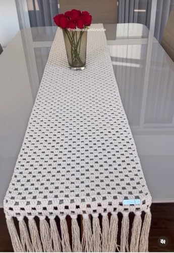 Generic - Generic Macrame Table Runner with Tassels, Natural Cotton, 130 x 45 cm, White .flo