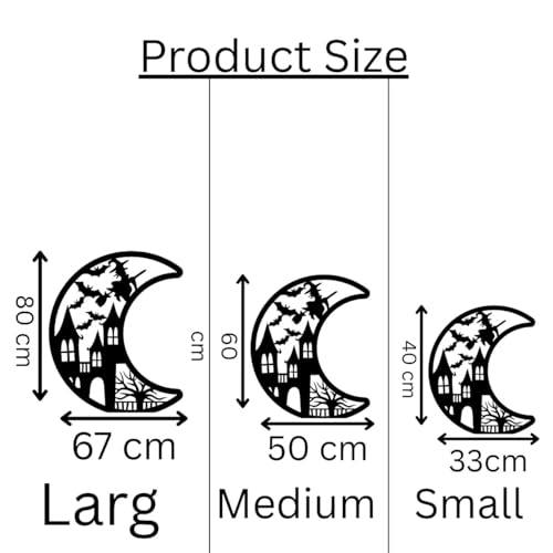 Generic - Generic MDF Halloween Moon Wall Art, Black, Haunted House with Bats Design, Large 67cm, Medium 50cm, Small 33cm, Wall Mounting Hardware Included (large)