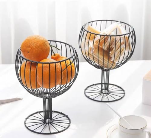 - ELEGANT DESIGN: Wine glass-shaped wire basket crafted from black metal, adding a sophisticated decorative touch to any kitchen counter or dining space