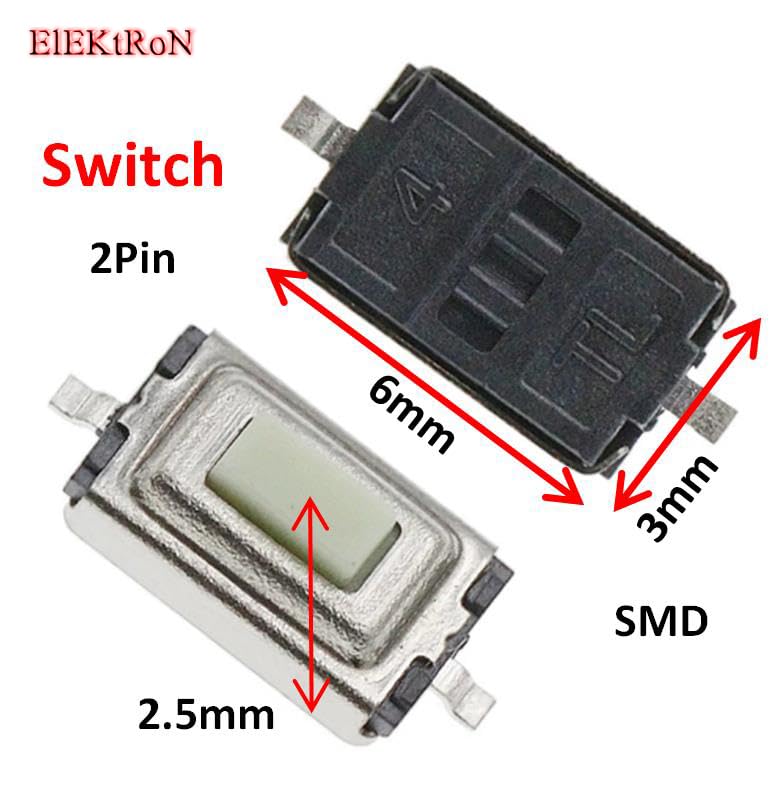 Generic - Generic Micro High Performance Durable Tactile Push Button Momentary Switch 2PIN Tact Self-reset (6mm x 3mm x 2.5mm) SMD Power Button