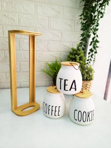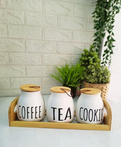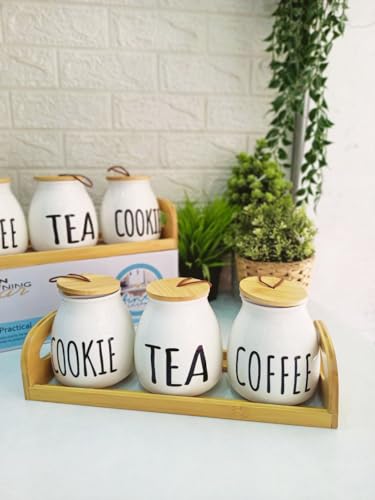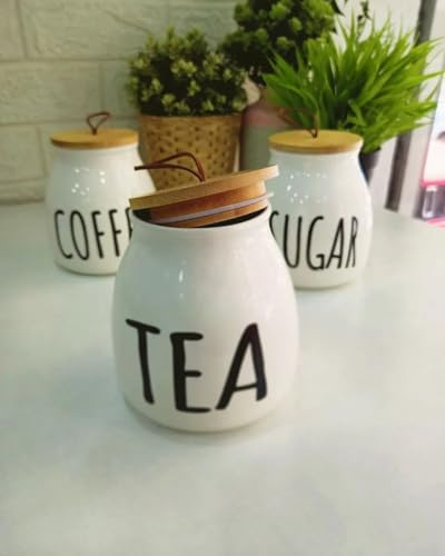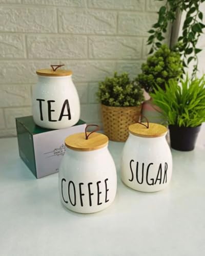 Generic - Generic Modern Elegant Spice Jar Set, 800ml, Multi, Porcelain & Bamboo, Airtight, Natural Design