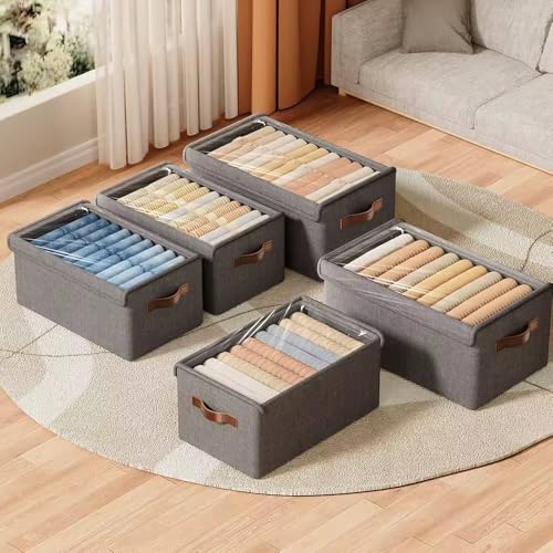 Generic - جيني منظم ادراج ملابس خشبي عصري من المعدن بلون رمادي مع غطاء وتصميم عصري او ام
