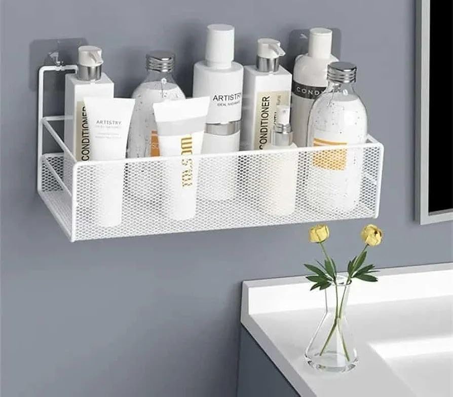 - VERSATILE DESIGN: Wall-mounted metal wire organiser with mesh construction perfect for bathroom toiletries or kitchen storage needs