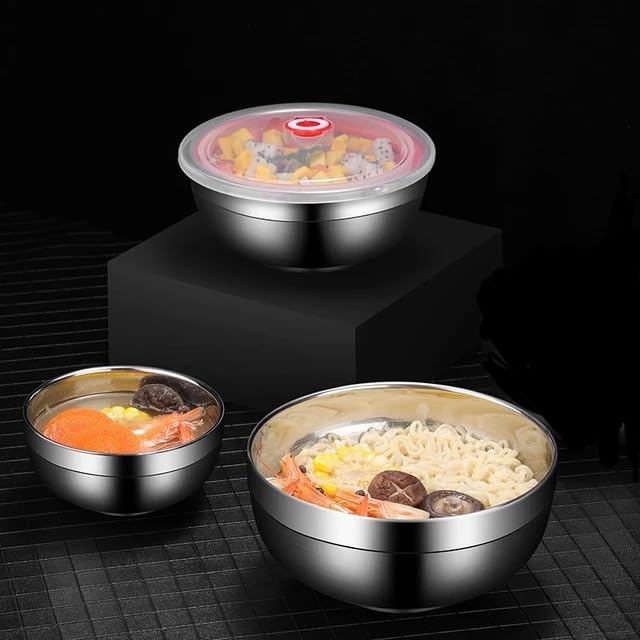Generic - Generic Modern Minimalist Stainless Steel Food Storage Containers 3 Drum 3 Crisper 14/16/18cm Rectangular with Rounded Corners Snap Closure Silver