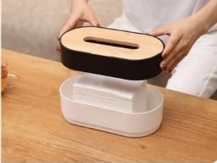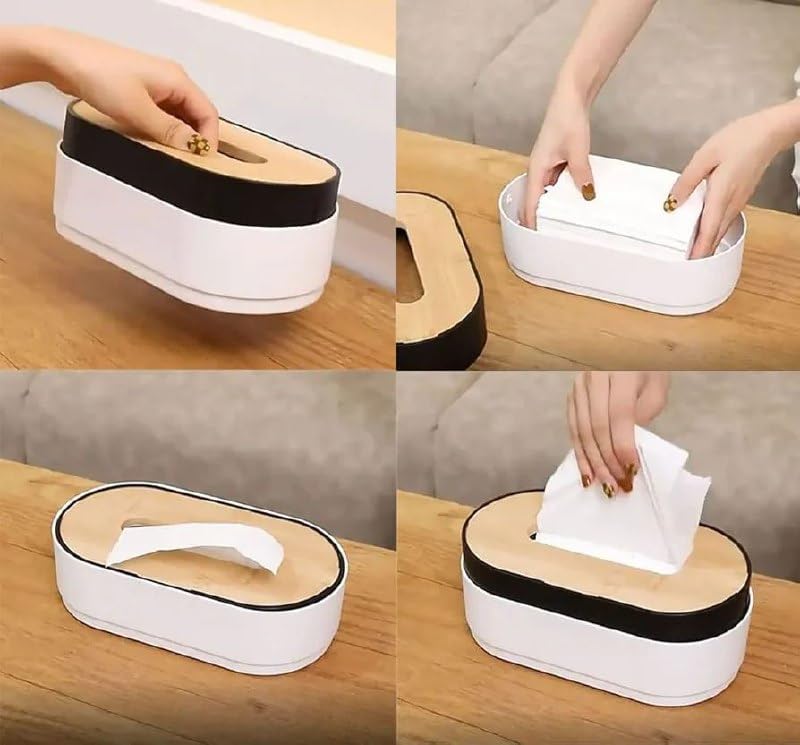 Generic - Generic Modern Oval Tissue Box Cover with Wooden Lid, Two-Tone Black and White Design, Decorative Bathroom Storage .SG