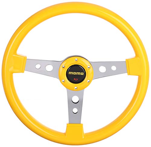 Generic - Generic Momo Ceramics Universal Racing Steering Wheel, with Horn Button for Car 13 Inch , Yellow and Silver