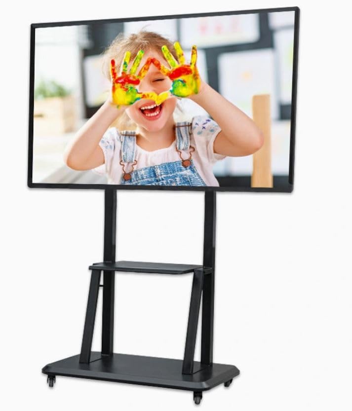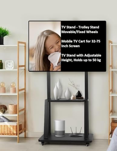 Generic - جيني حامل شاشة مع عجلات، 32-75 انش، اسود، قائم على الارض، قابل للدوران، التلفزيون، الشاشة، اللابتوب، 50 كجم، 400 × 600 ملم فيسا ارتفاع قابل للتعديل، يحمل حتى 50 كجم