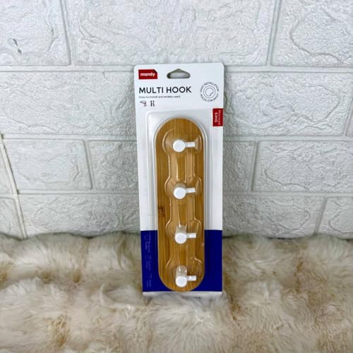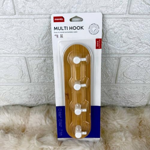 Generic - شماعة حائط لاصقة متعددة الخطافات، شماعة حائط بتصميم خشبي سهلة التركيب بقضيب تثبيت قوي من 4 خطافات