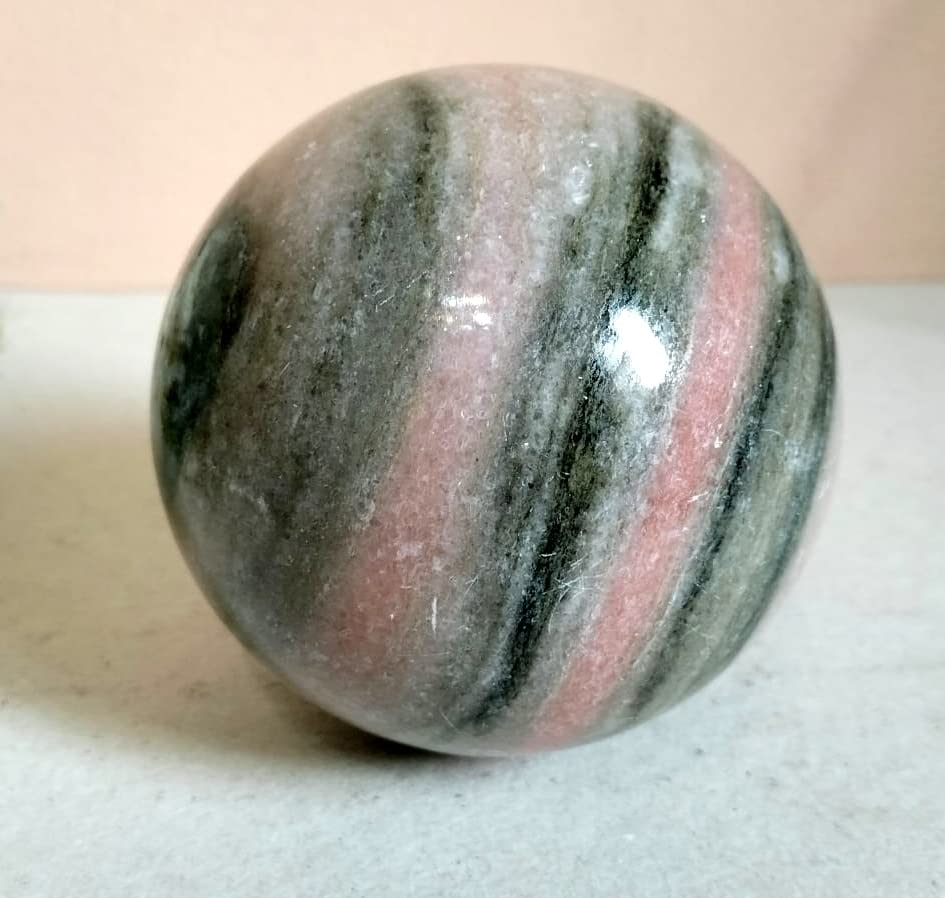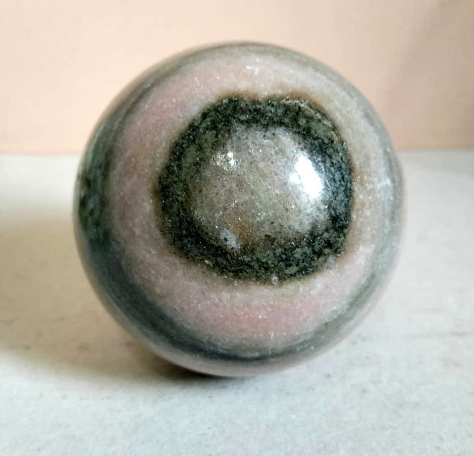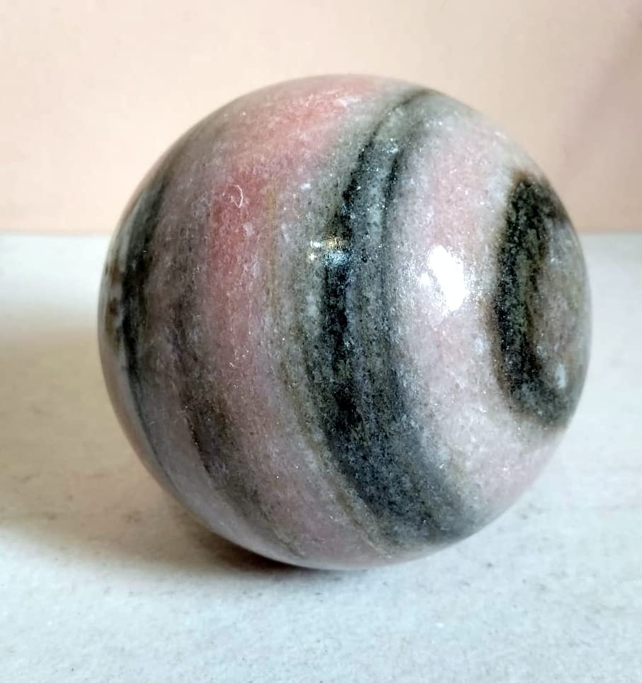 Generic - جيني منحوتة كروية من الحجر الطبيعي، عرض 10 سم، زهري، تجريدي، معاصر، سطح الطاولة، شاكرا، التأمل، الطاقة الإيجابية