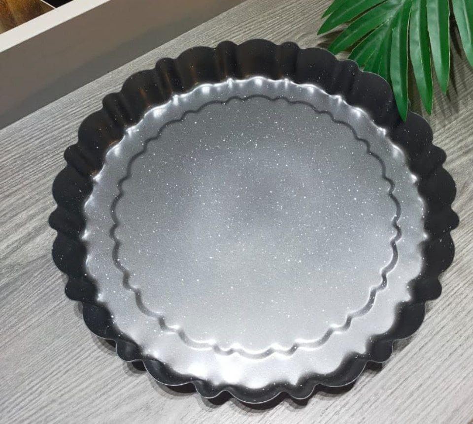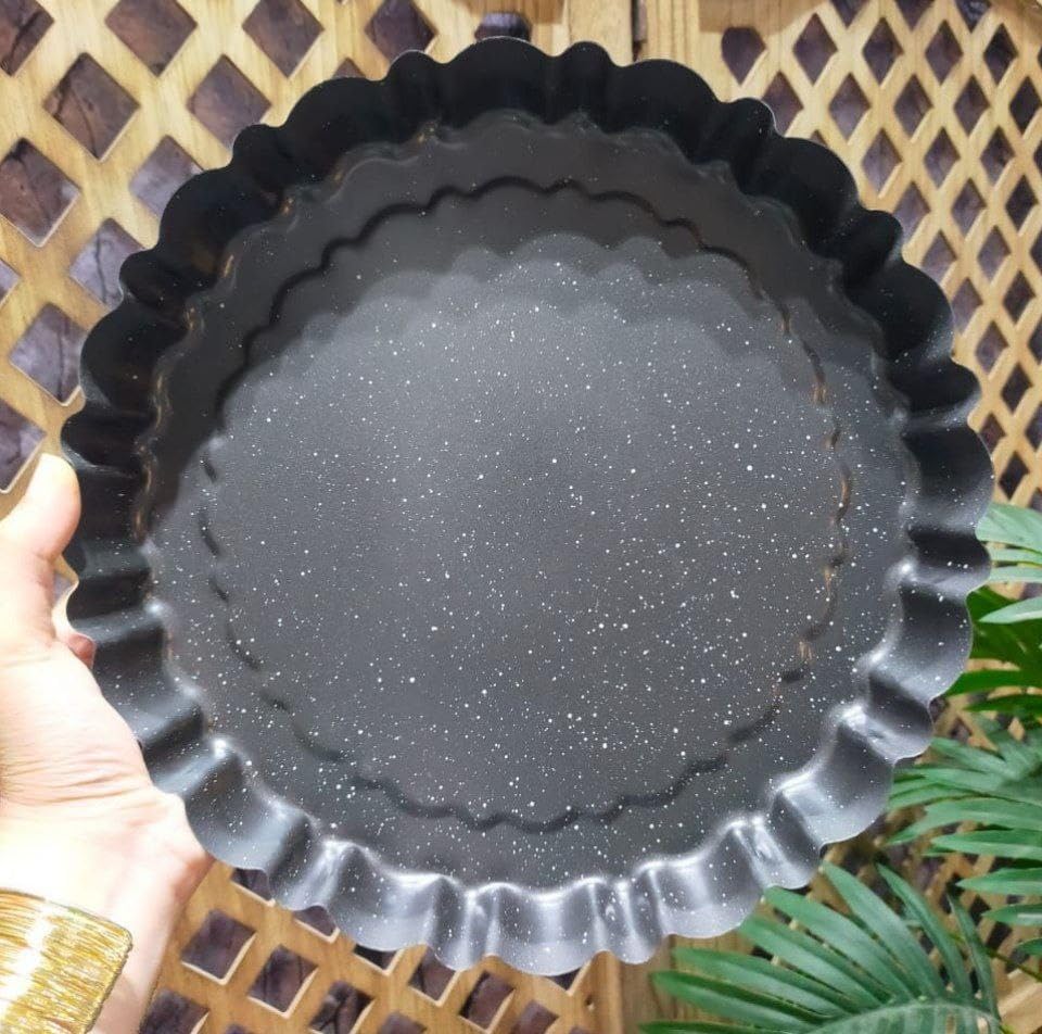 Generic - صينية تارت دائرية مقاومة للالتصاق بلون أسود ومقاس كبير وتصميم مموج، أدوات خبز احترافية للخبز المنزلي .دي بي