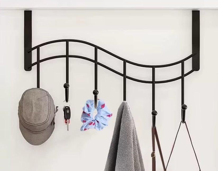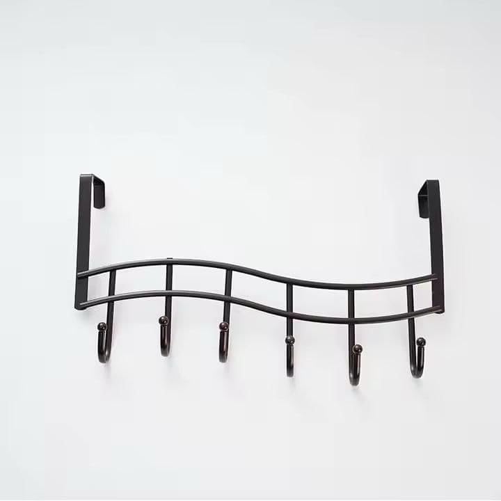 Generic - Generic Over Door Hook Rack, Decorative Wave Design, 5 Hooks, Black Metal FI