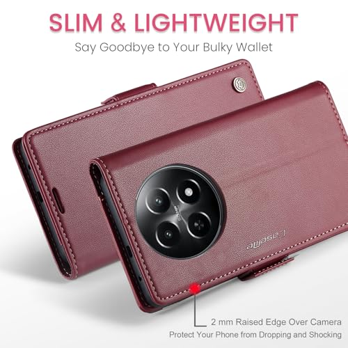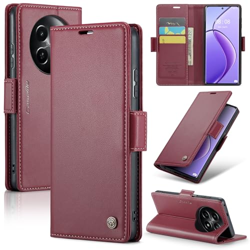 Generic - جراب موبايل قلاب من جلد صناعي بفتحة للبطاقات متوافق مع ريلمي 12 شبكة الجيل الخامس 5G - x 5G لون أحمر
