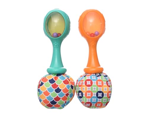 Generic - طقم شخشيخة أطفال بلاستيك مع خرز ملون وجزء محشو بالقطن الناعم يضيف المزيد من التسلية للأطفال من الجنسين، مجموعة من قطعتين، متعددة الألوان