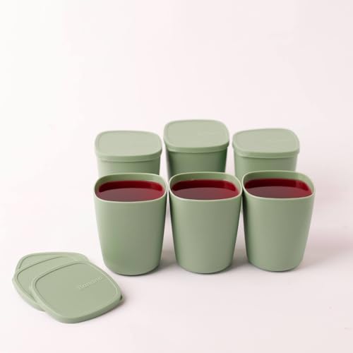 - COMPLETE SET: Includes 6 reusable drinking cups with matching lids in an attractive green colour, perfect for everyday use at home or on the go