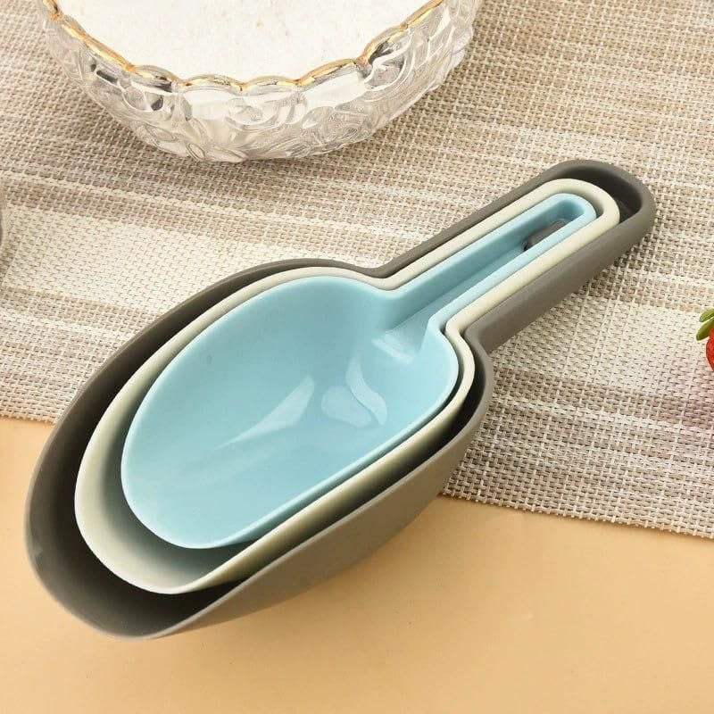 - COMPLETE SET: This kitchen scoop set includes 3 pieces in different sizes, featuring attractive blue, beige, and grey colours to suit various kitchen needs