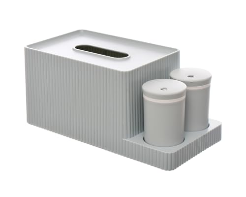Generic - Generic Plastic Tissue Organizer Box Containing Two Spices Jars With Modern Design And Made Of High Quality Material Practical For Dinner Table Set Of 3 Pieces - Soft Grey