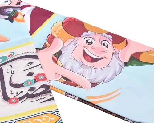 Generic - مفرش طاولة كبير من البوليستر بتصميم طباعة شخصيات كرتونية وحواف مموجة مناسبة لديكور المنزل في رمضان مقاس 1.6 متر× 1.5 متر- متعددة الألوان
