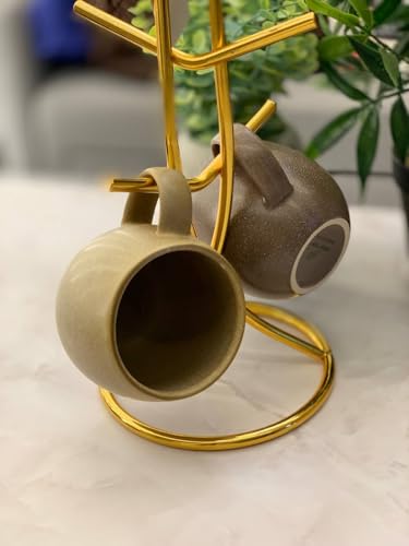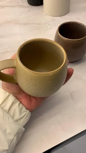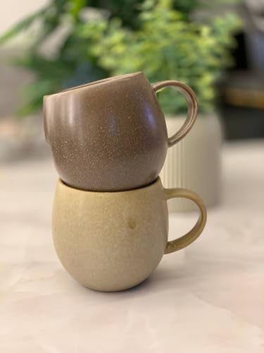 Generic - طقم أكواب بمقبض مع بطن مستدير من جينيريك بومبي، مصنوع من الستونوير، سعة 350 مليلتر، باللونين البني والبيج، آمن للميكروويف والفرن وغسالة الصحون، عدد القطع: 2