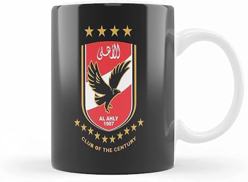Generic - كوب قهوة كلاسيكي من البورسلين بطبعة الأهلي، أسود، 250 مل، عبوة من قطعتين