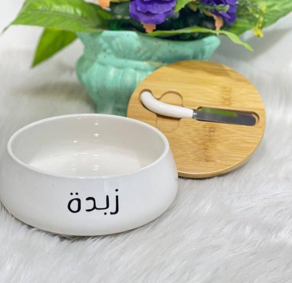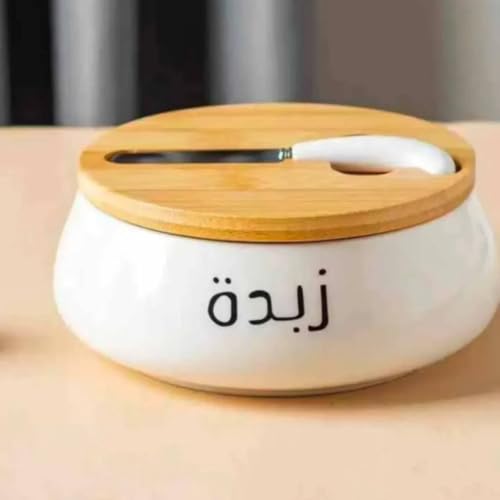 - ELEGANT DESIGN: White porcelain butter dish featuring Arabic calligraphy, complemented by a natural wooden lid for a sophisticated aesthetic appeal