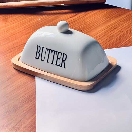 - This ceramic butter dish features a stylish wood base that not only enhances its aesthetic appeal but also provides stability and support for everyday use in your kitchen or dining table.