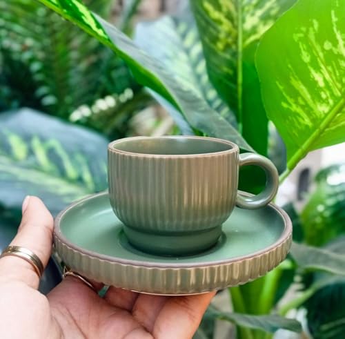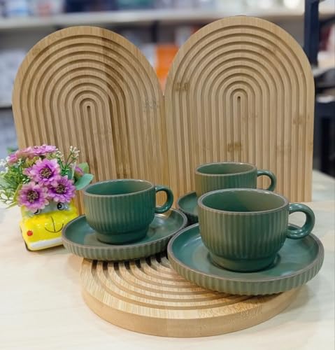 Generic - طقم فناجين قهوة من البورسلين، 6 أكواب و6 أطباق، لون جرين ساج