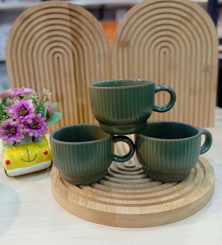 - تصميم أنيق: تتميز مجموعة أكواب القهوة المصنوعة من البورسلين الأخضر الداكن بتصميم كلاسيكي مضلع يضيف الرقي إلى أي طاولة