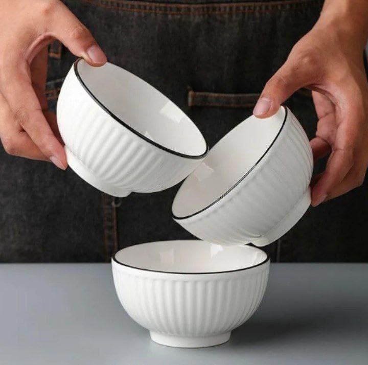 - تصميم أنيق: طقم عشاء بورسلين أبيض كلاسيك يتميز بحواف بلون أسود أنيق وتفاصيل مموجة دقيقة تضفي لمسة من الرقي الخالد.