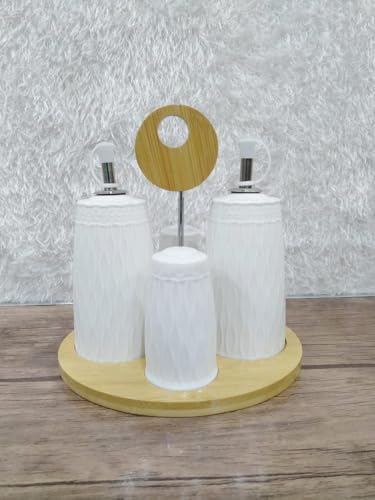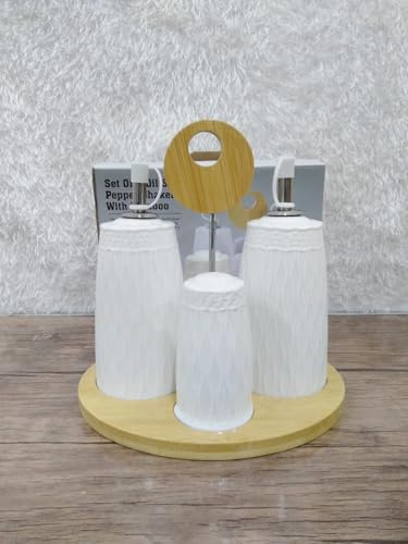 - PREMIUM SET: Complete 4-piece porcelain set includes oil and vinegar bottles plus salt and pepper shakers, all in elegant white finish
