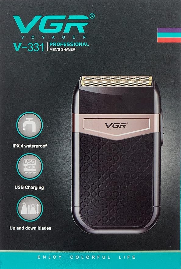 Generic - جيني ماكينة حلاقة كهربائية محمولة (جيب) وشنطة V-331 - حلاقة للرجال - عصرية ونابضة بالحياة - ديسكو ميتاليك - 2 راس دوار/رقائق معدنية - تعمل بالبطارية - راس قابل للفصل