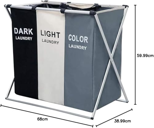 - Three compartment dividing makes it easy to separate white clothes from colorful and dirty clothes.