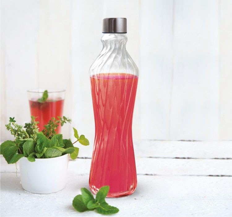 Generic - Generic Premium Glass Water Bottle, 1000ml Capacity, Decorative Wave Pattern Design, Multi-Purpose .nin
