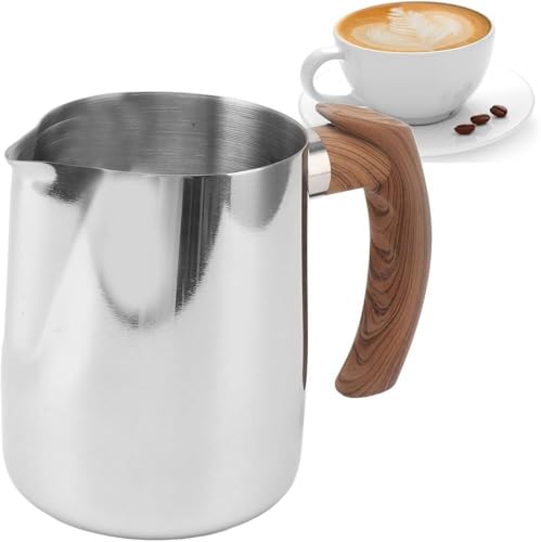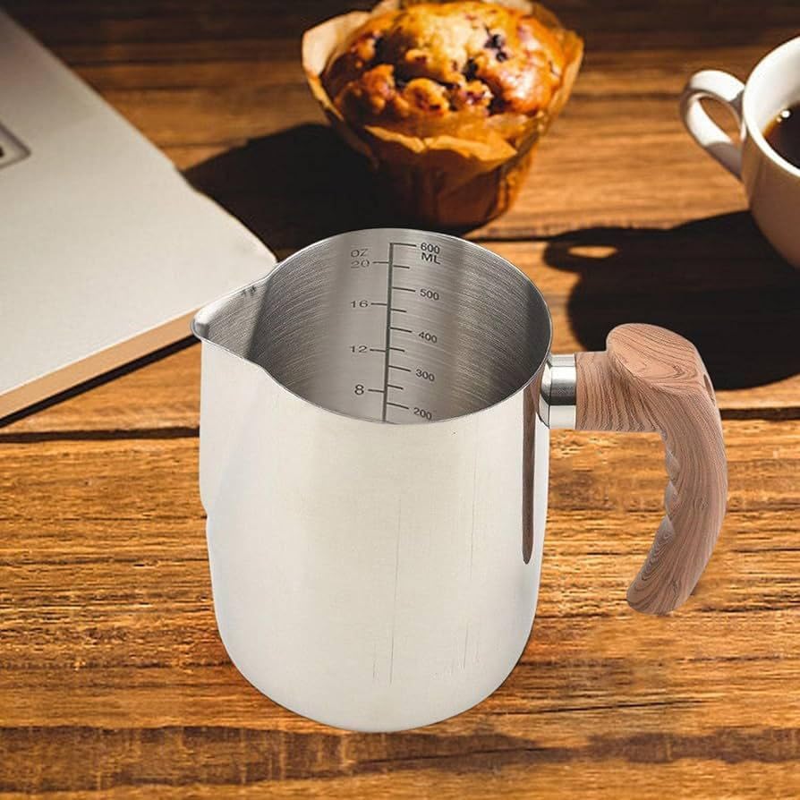 Generic - Generic Professional Stainless Steel Milk Frothing Pitcher, 600ml Capacity, Internal Measurement Graduations, Wooden Handle, for Barista Coffee Art .bak