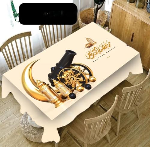 Generic - جيني مفرش طاولة رمضان، جلد، عازل للحرارة، مقاوم للبقع، سهل التنظيف، 150 × 220 سم لكل ثانية