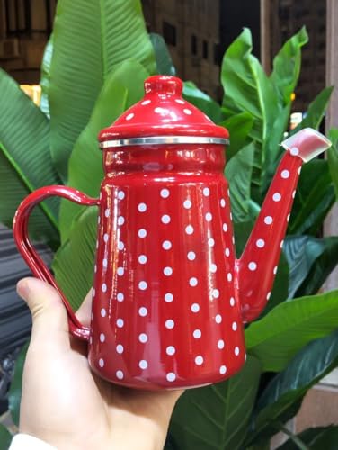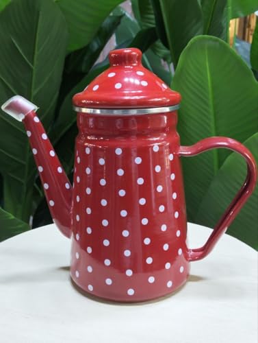 Generic - جيني ابريق معدني منقط بلون احمر، سعة 1.5 لتر، هيكل معدني متين مع فوهة سهلة الصب ومقبض مريح. (1.2 لتر)