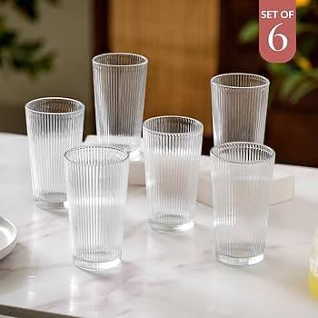 - Complete Set: This ribbed glass juice cup set includes 6 pieces, perfect for serving beverages to family and guests during meals or gatherings