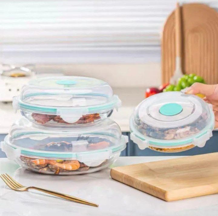 Generic - Generic Round Glass Food Storage Containers with Vented Lids, 3-Piece Set, Microwave and Oven Safe, 450ml, 750ml, 1350ml .ze