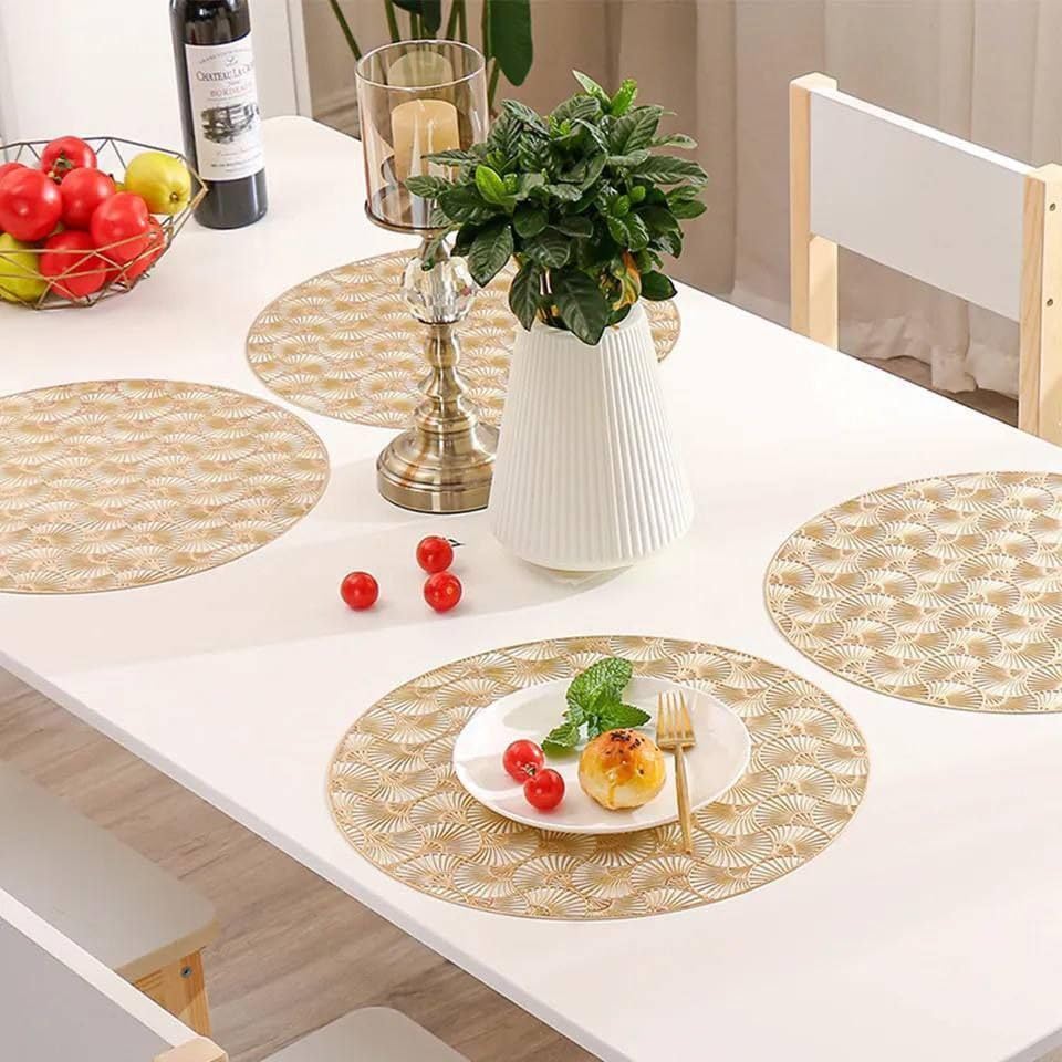 Generic - Generic Round Gold Pattern Leather Placemats, Heavy Duty Dining Table Coasters, .sew